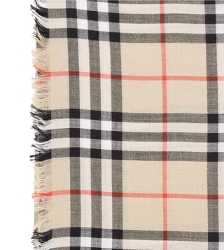 This scarf is made of wool and silk, featuring the iconic check pattern and fringed edges.. Products purchased from Darveys are supported exclusively by the warranty/exchange policies of Darveys and its partner boutiques. Brand owners and their channel partners are not responsible for exchange/warranty services for items purchased through Darveys.