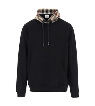 Elevate your style with the Burberry Black Checked Hoodie. Hoodie made of cotton x000D hoodie with check pattern x000D long sleeves x000D ribbed cuffs x000D one pouch pocket x000D straight hem x000D black, multi x000D made in portugal x000D composition: cotton the model is wearing size m. Model measurements: height: 185 cm chest: 94 cm waist: 75 cm hips: 93 cm shoulder: 48 cm.