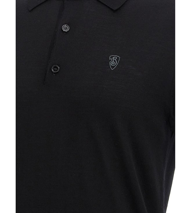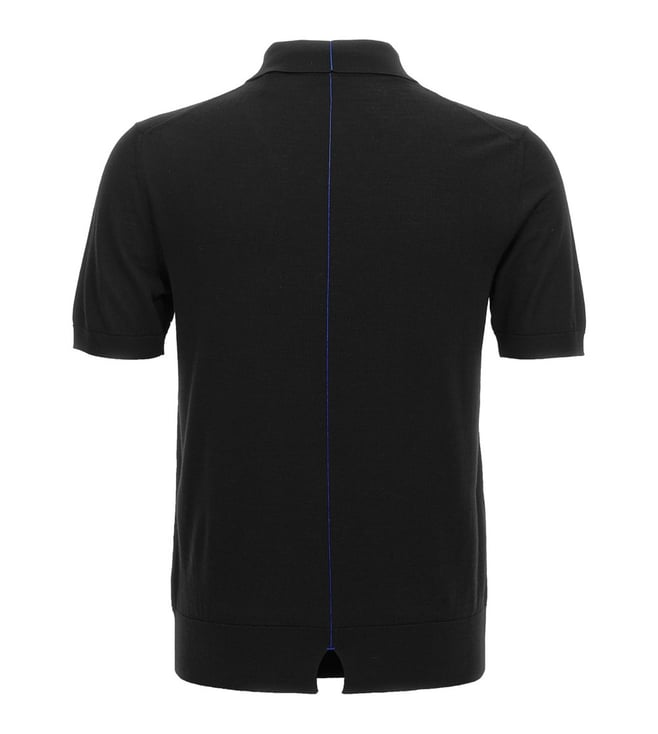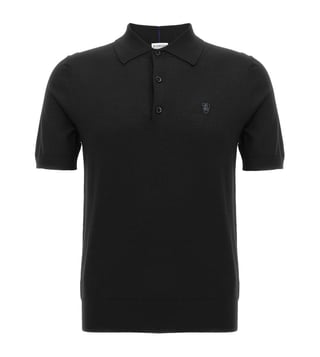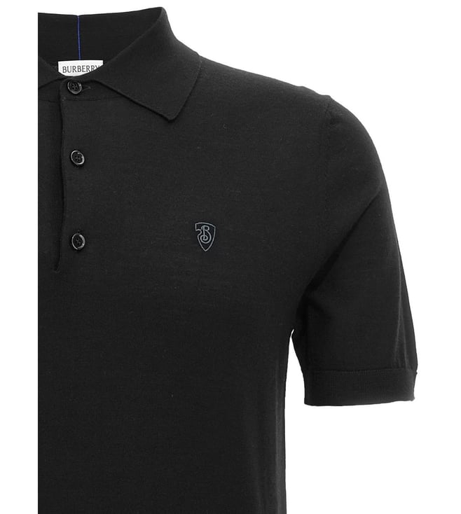 Elevate your style with the Burberry Black polo t-shirt. Wool polo shirt, front logo embroidery, collar and buttons, short sleeves, back detail with contrast embroidery and central split. True to size fit.
