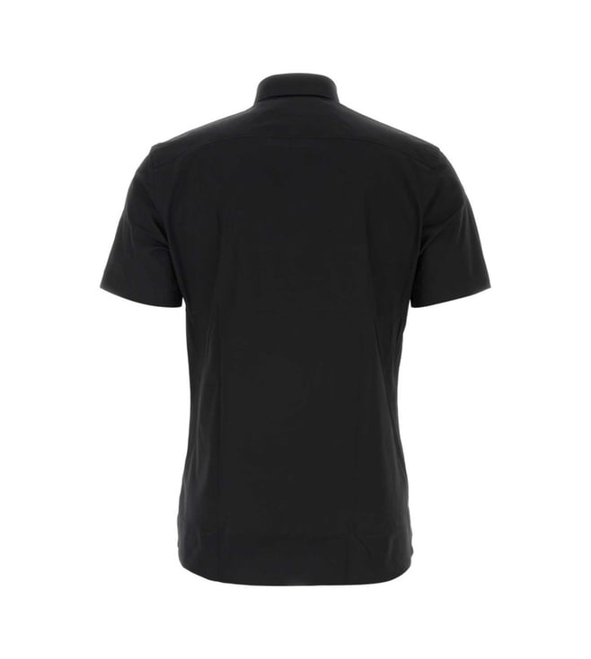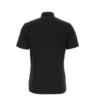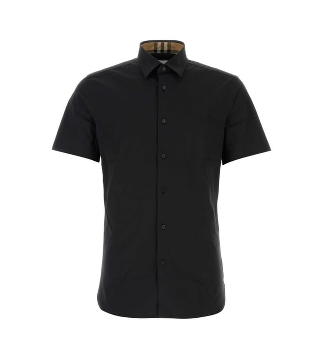 Elevate your style with the Burberry Black Poplin shirt. Short sleeves button closure point collar.