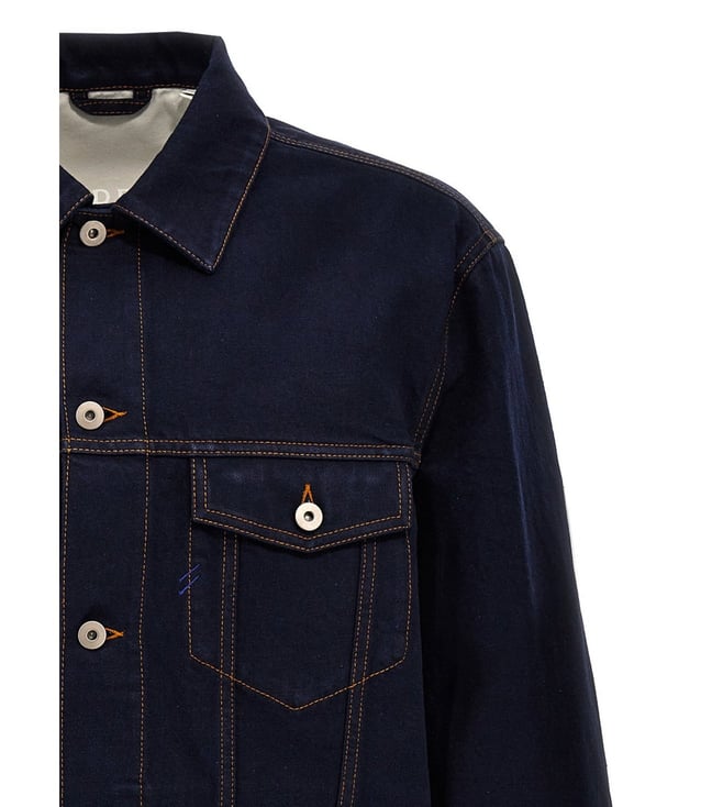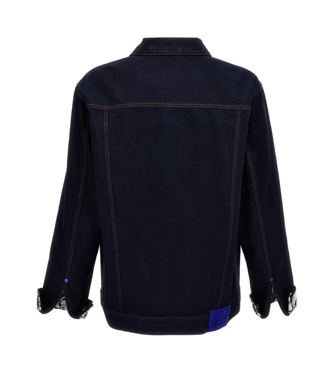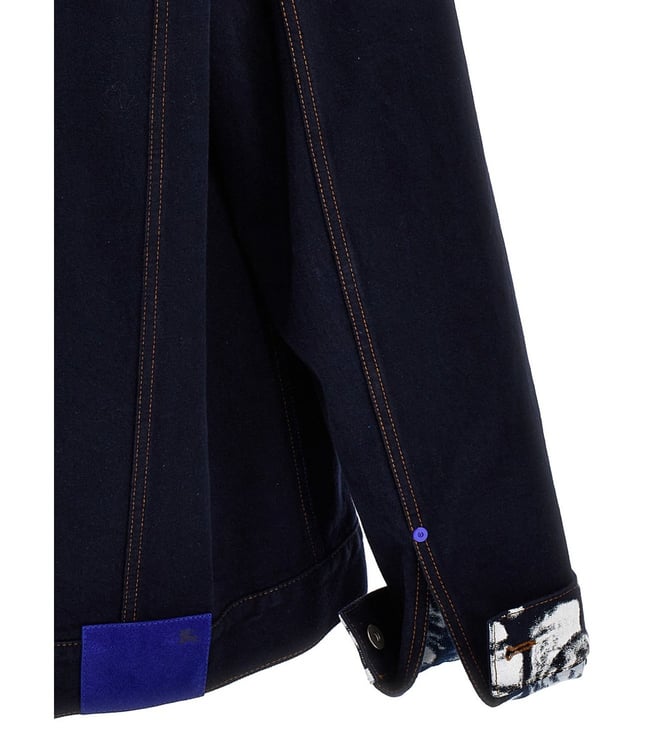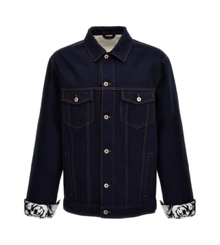 Elevate your style with the Burberry Navy Oversized Fit Denim Jacket. Japanese cotton denim jacket fully lined with roseprint fabric visible in the cuff turnup, button closure, chest pockets. Oversized fit. Products purchased from Darveys are supported exclusively by the warranty/exchange policies of Darveys and its partner boutiques. Brand owners and their channel partners are not responsible for exchange/warranty services for items purchased through Darveys.
