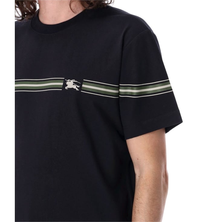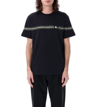 Elevate your style with the Burberry Black Striped t-shirt. Logo short sleeves crewneck pullover. Products purchased from Darveys are supported exclusively by the warranty/exchange policies of Darveys and its partner boutiques. Brand owners and their channel partners are not responsible for exchange/warranty services for items purchased through Darveys.