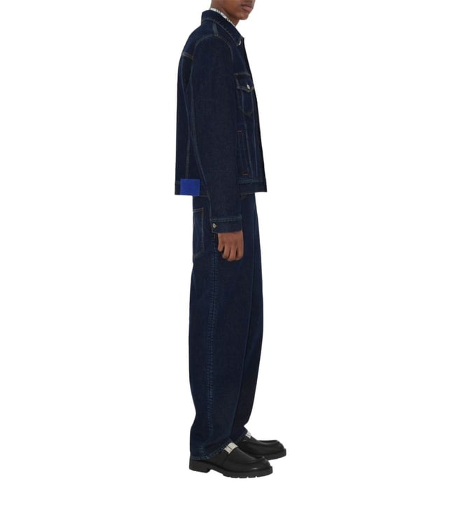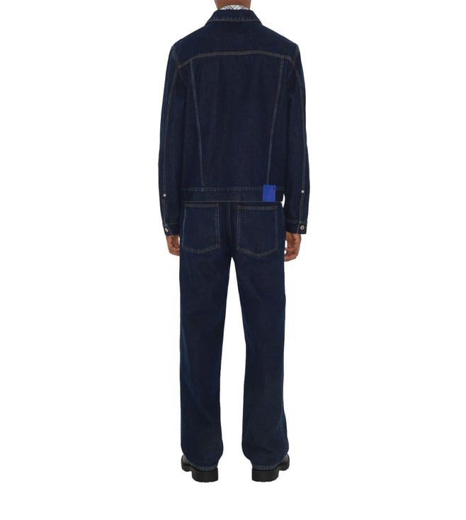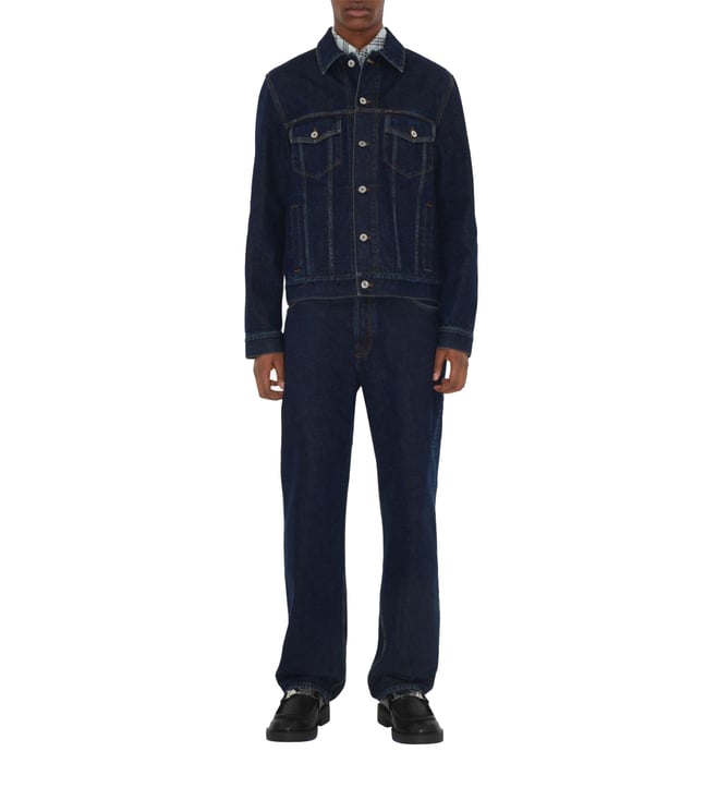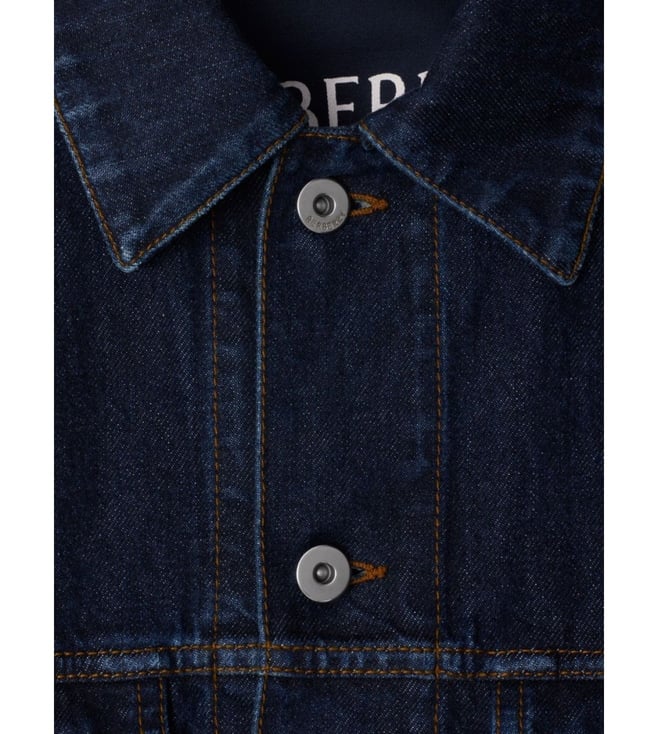 Elevate your style with the Burberry Navy Blue Denim Jacket. Dark blue denim jacket with classic collar, pockets and button fastening. Front button fastening.