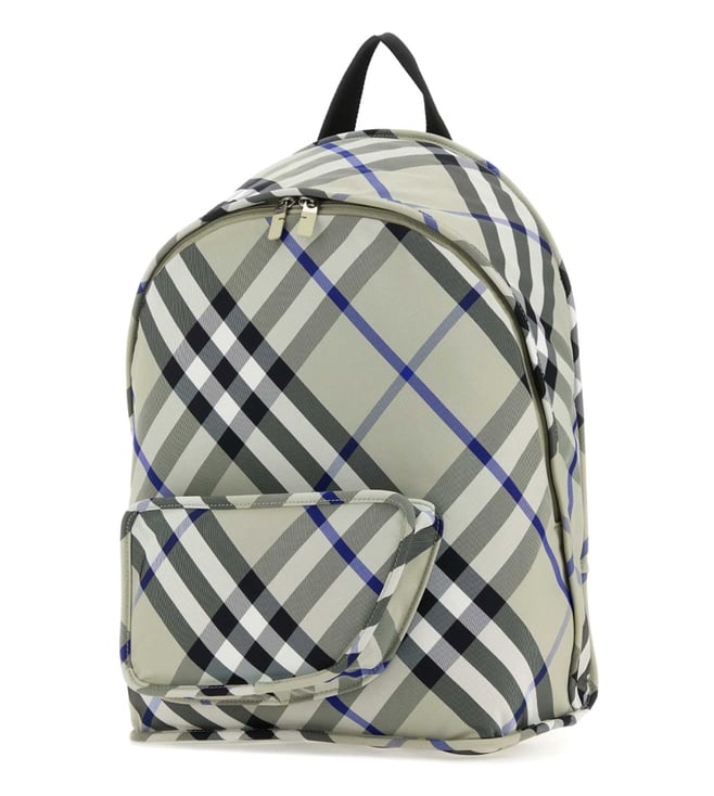 Expand the collection of your accessories in a trendy way with this bag from Burberry. Grey printed nylon shield backpack with zip closure, 1 compartment, checks, adjustable strap. Products purchased from Darveys are supported exclusively by the warranty/exchange policies of Darveys and its partner boutiques. Brand owners and their channel partners are not responsible for exchange/warranty services for items purchased through Darveys.