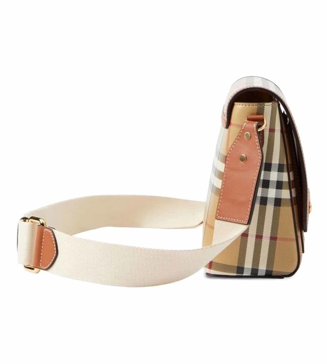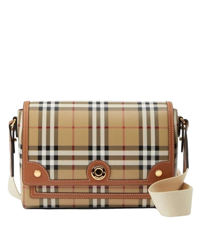 Note check crossbody bag from burberry featuring multicolour, leather, check pattern, engraved logo, gold-tone hardware, foldover top with press-stud fastening and detachable shoulder strap. Products purchased from Darveys are supported exclusively by the warranty/exchange policies of Darveys and its partner boutiques. Brand owners and their channel partners are not responsible for exchange/warranty services for items purchased through Darveys.
