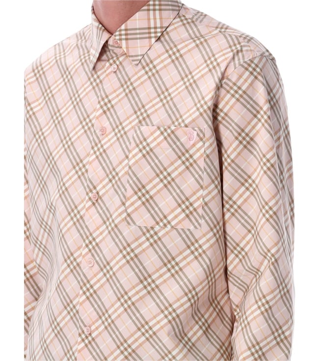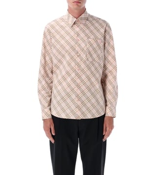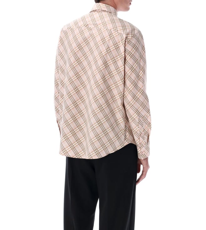 Elevate your style with the Burberry Beige Checked shirt. Collar, long sleeves, front button closure.