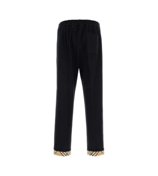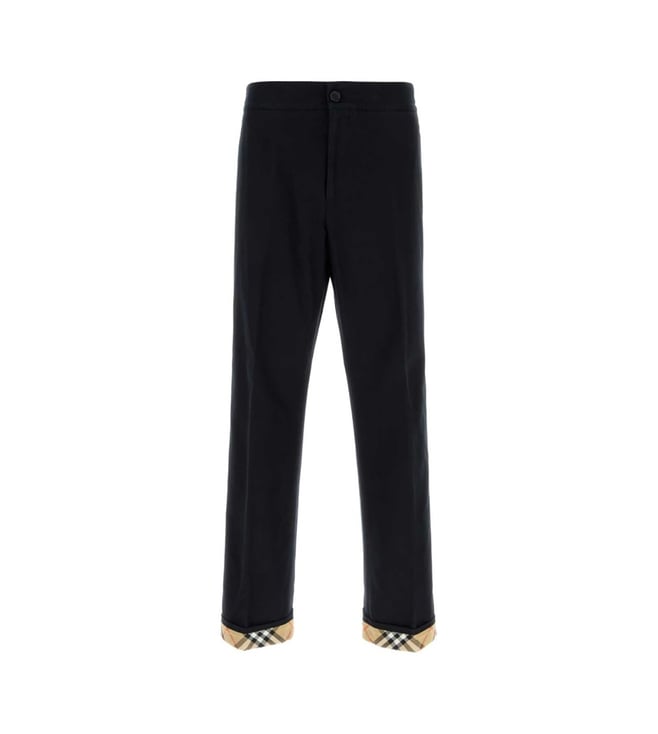 Burberry Navy Blue Checks Relaxed Fit Gabardine Pants