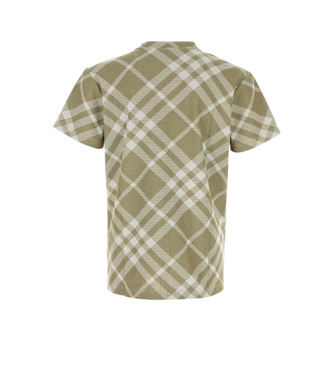 Elevate your style with the Burberry Olive Checked t-shirt. Crewneck short sleeves pullover style. Products purchased from Darveys are supported exclusively by the warranty/exchange policies of Darveys and its partner boutiques. Brand owners and their channel partners are not responsible for exchange/warranty services for items purchased through Darveys.