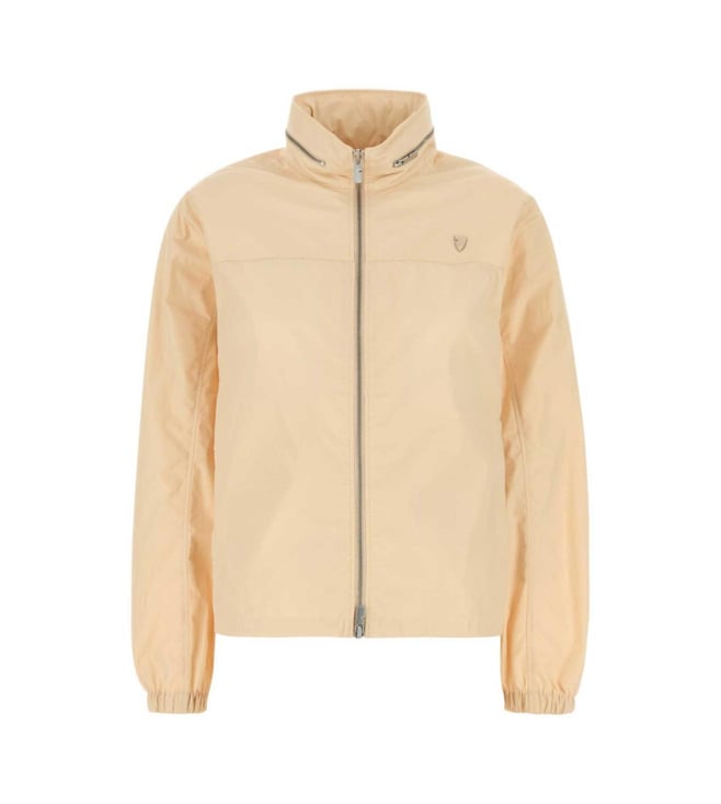 The Burberry Peach Jacket is a symphony of elegance and modernity, enveloping you in a soft, pastel hue reminiscent of a serene sunrise. Crafted from luxurious, breathable fabric, it features a tailored silhouette that flatters every curve. The jacket is adorned with signature Burberry check lining, adding a touch of classic sophistication. Its sleek, minimalist design is punctuated by polished gold buttons, offering a subtle yet striking contrast. Perfect for any occasion, it embodies timeless style and effortless grace.