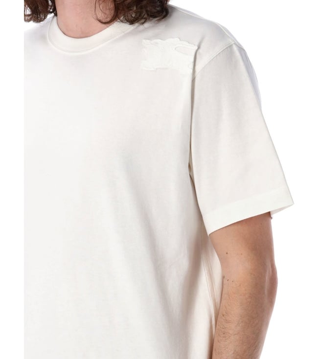 Elevate your style with the Burberry White t-shirt. Logo short sleeves crewneck pullover. Products purchased from Darveys are supported exclusively by the warranty/exchange policies of Darveys and its partner boutiques. Brand owners and their channel partners are not responsible for exchange/warranty services for items purchased through Darveys.