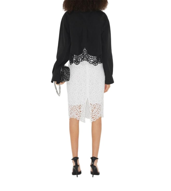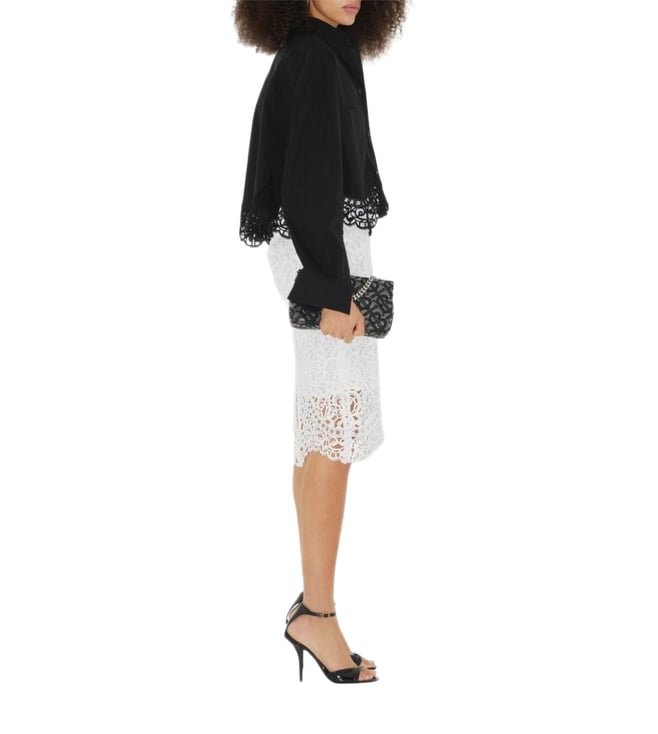 Elevate your wardrobe with the Burberry White skirt. Designed with macrama-lace pencil skirt from burberry featuring floral lace appliqu, rear slit, concealed rear zip fastening, mid-length, optic white and cotton. this piece fits true to size. we recommend you get your regular size, model is 1, 75m / 5ft 8in wearing size 8 (uk), these trousers combine comfort and sophistication for everyday wear.