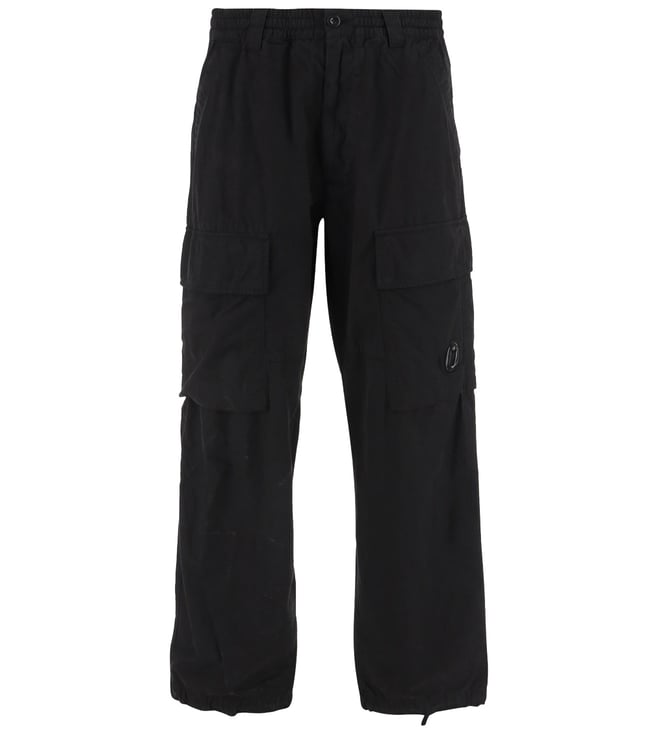 C.P. Company Black Wide Leg Cargo Loose Fit Pants