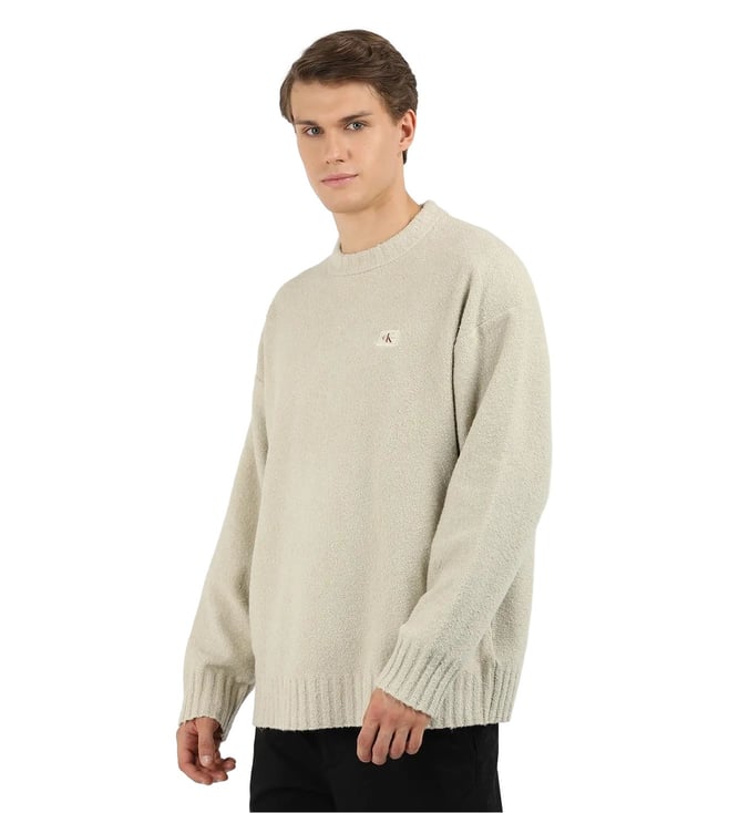 CALVIN KLEIN JEANSCalvin Klein Beige Cotton Oversized Fit Sweater