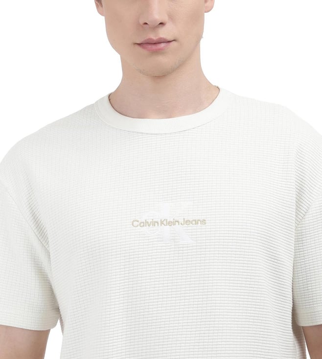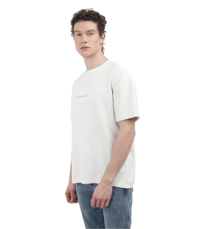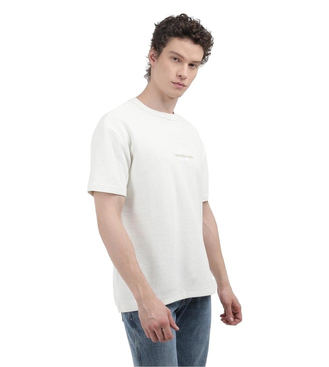 Calvin Klein Beige Cotton Relaxed Fit Striped T-Shirt