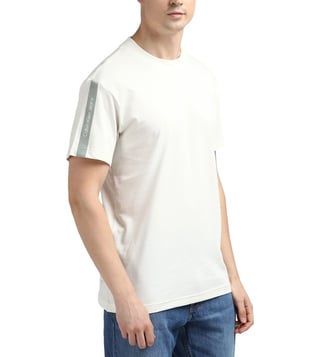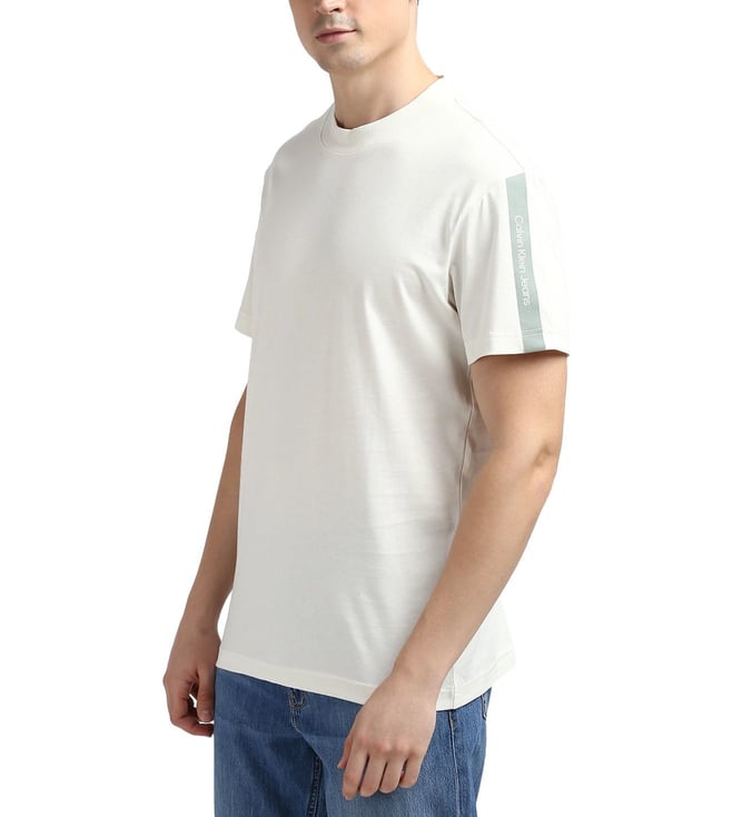 CALVIN KLEIN JEANSCalvin Klein Beige Solid Crew Neck Short Sleeves T-Shirt