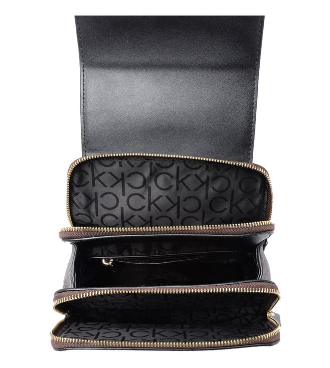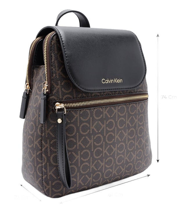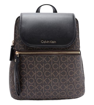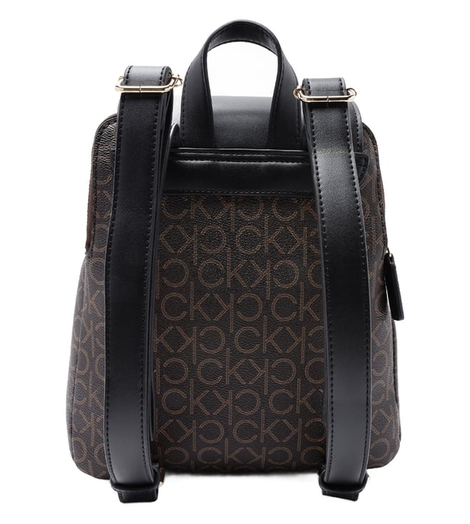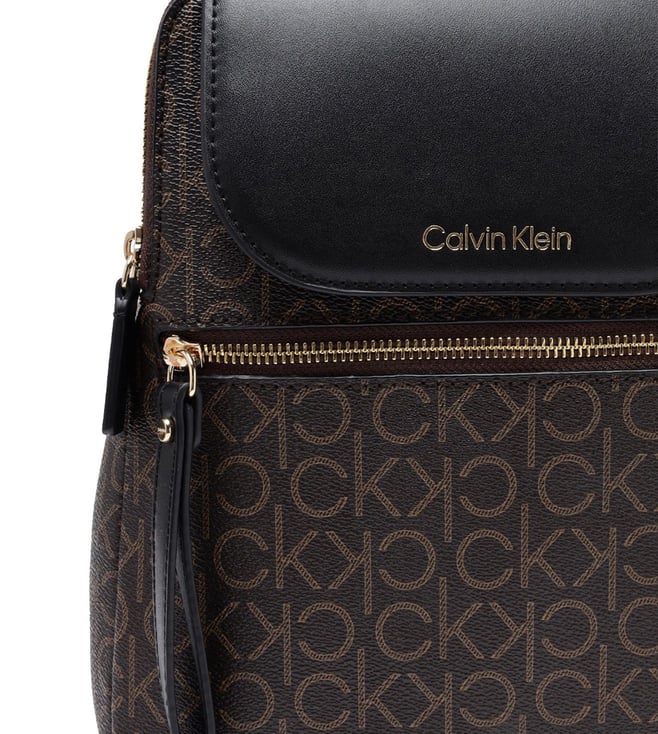 CALVIN KLEIN Black & Brown Logo Medium Backpack