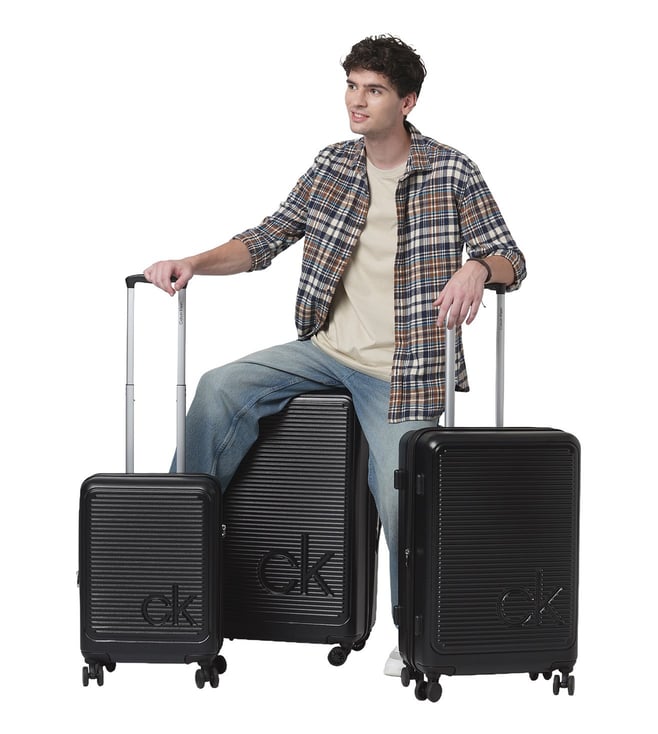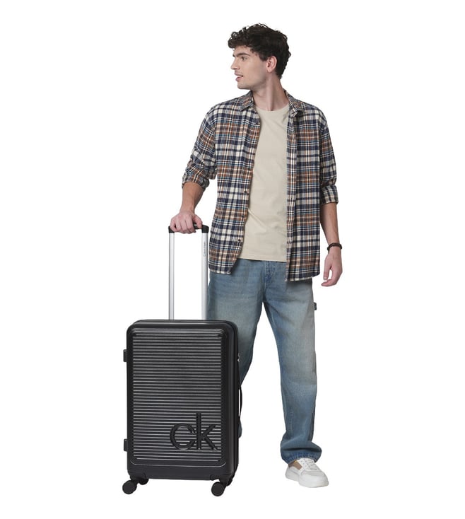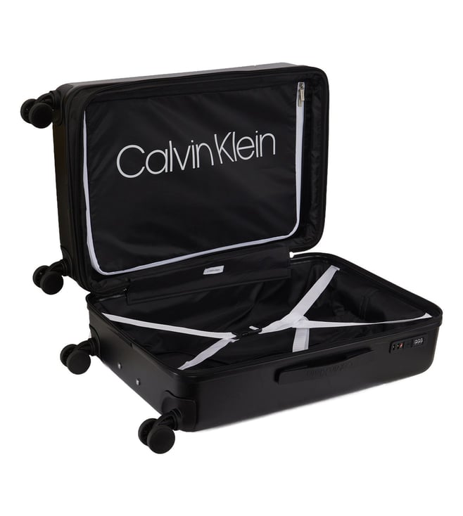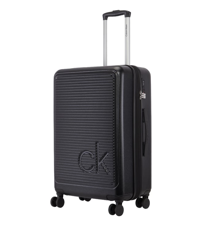 CALVIN KLEIN Black HORIZON Textured Medium Hard Sided Expandable Checked Luggage