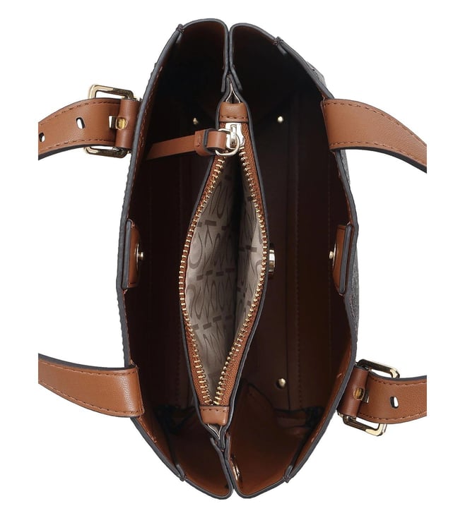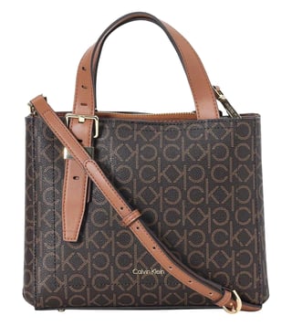 Elevate your casual style with satchel from Calvin Klein. Designed for the fashion-forward woman on the go this logo-patterned accessory is the perfect blend of form and function. Its spacious interior easily accommodates all your essentials while the stylish exterior adds a touch of flair to any outfit. Whether you're running errands or meeting friends for coffee this versatile bag complements your casual looks with effortless grace.