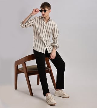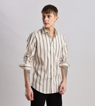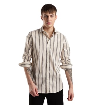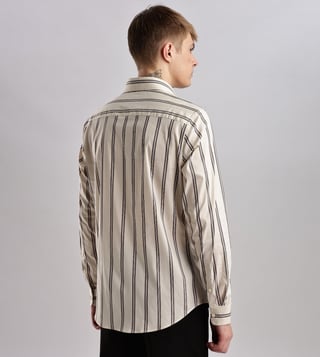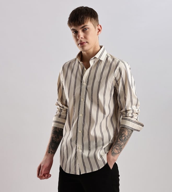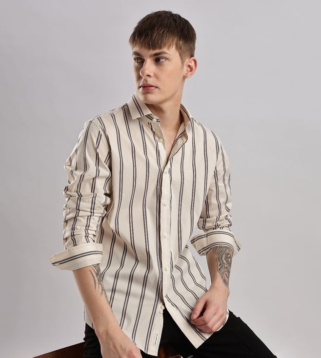 CALVIN KLEIN JEANS Beige Men Slim fit Striped Shirt