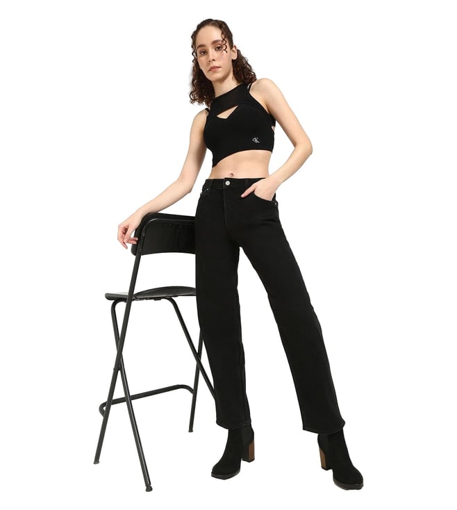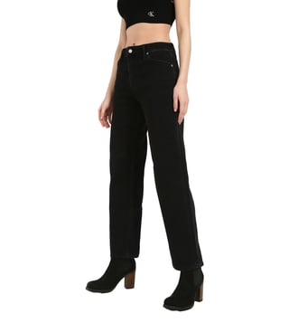 CALVIN KLEIN JEANS Black Cotton Regular Fit High Rise Jeans