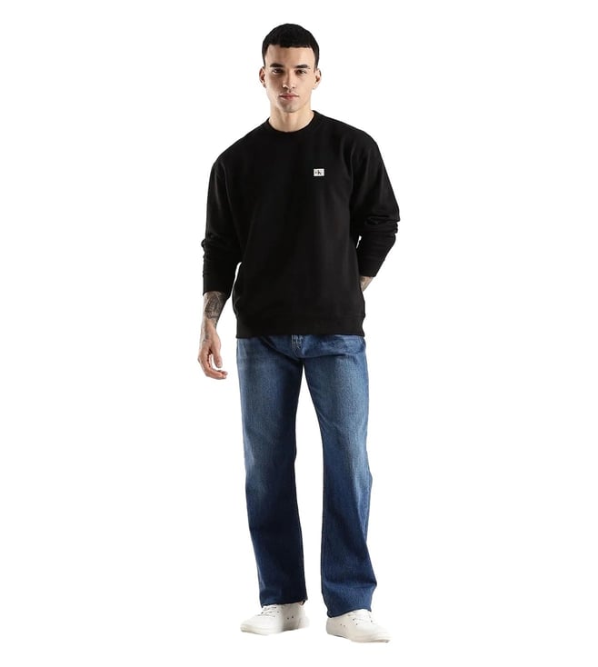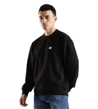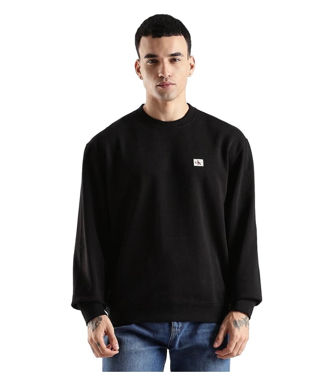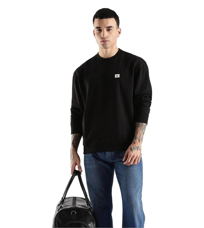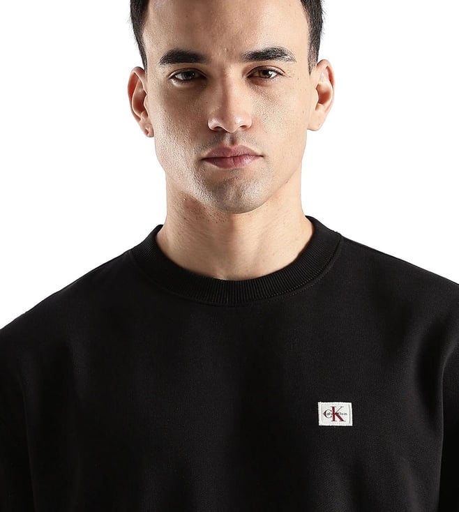 Look your best by wearing this black regular fit sweatshirt from Calvin Klein Jeans. Tailored to sartorial perfection from premium quality fabric, it assures a soft and soothing touch against the skin. The round neck adds to its appeal.