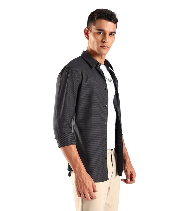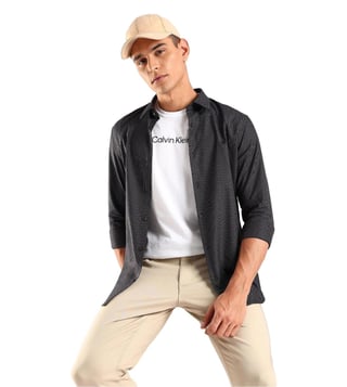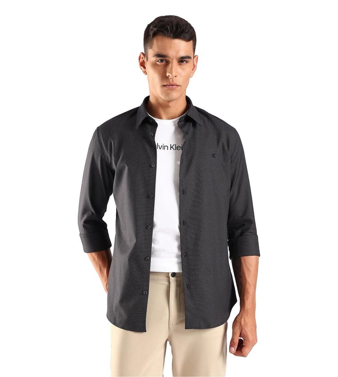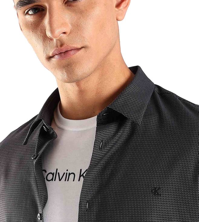 CALVIN KLEIN JEANS Black Cotton Slim Fit Printed Shirt