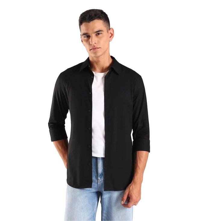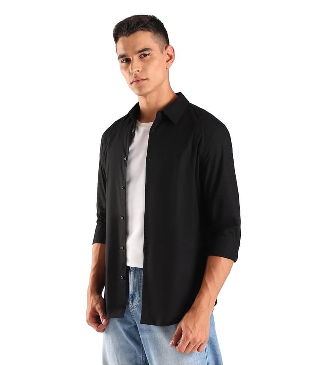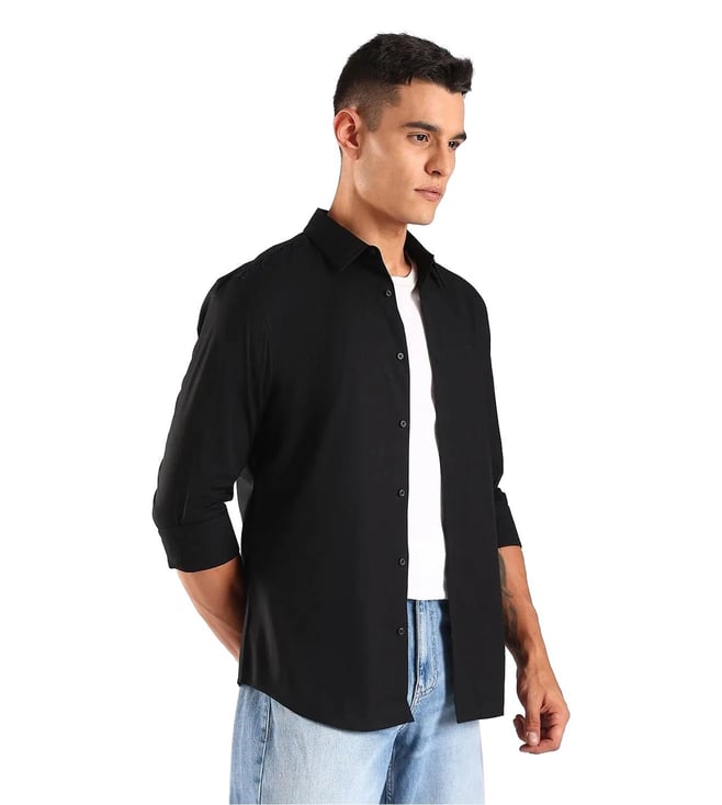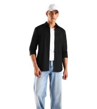 Black Cotton Slim Fit Shirt