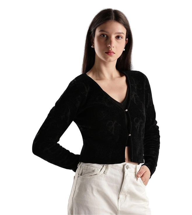 CALVIN KLEIN JEANS Black Regular Fit Printed Sweater