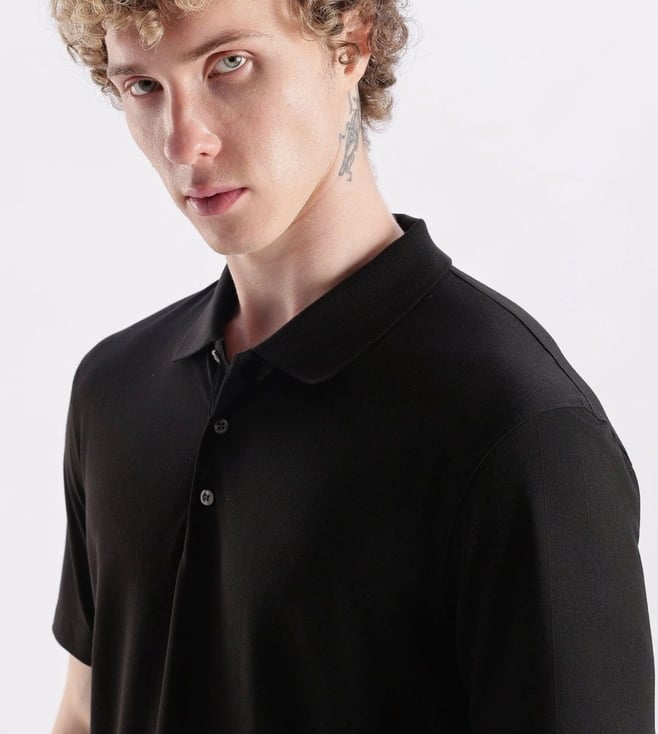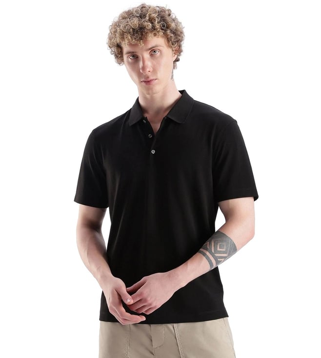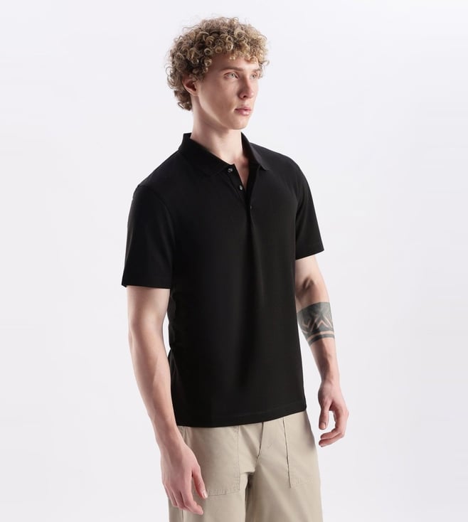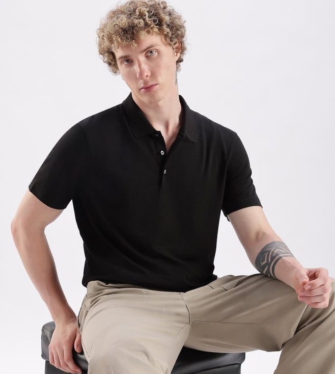 Vaunt a new trend wearing this black regular fit polo t-shirt from Calvin Klein Jeans. Tailored to sartorial perfection from premium quality fabric, it assures a soft and soothing touch against the skin. Exuding short sleeves, it is sure to fetch you compliments from all. It emanates a striped pattern which makes it a unique choice.