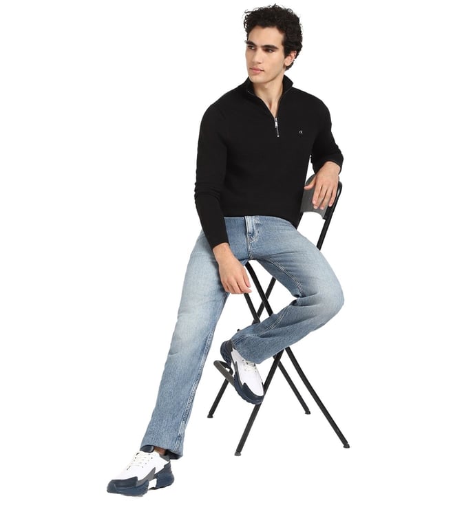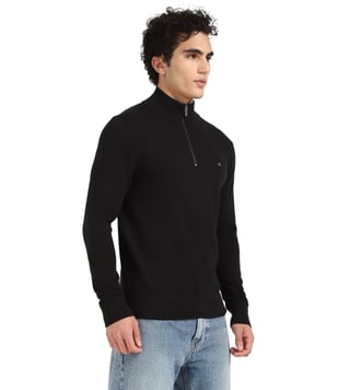 Stay cozy and stylish all day in the Calvin Klein Jeans Ck Black Regular Fit Sweater. Made from soft cotton, this sweater is perfect for daily wear with its long sleeves and high neck design. The detailing adds a touch of sophistication to any outfit. Whether you are running errands or meeting friends for coffee, this sweater will keep you looking effortlessly chic. Upgrade your wardrobe with this versatile piece that combines comfort and fashion seamlessly.
