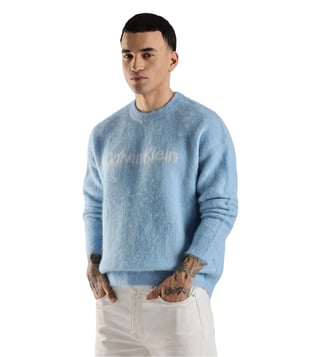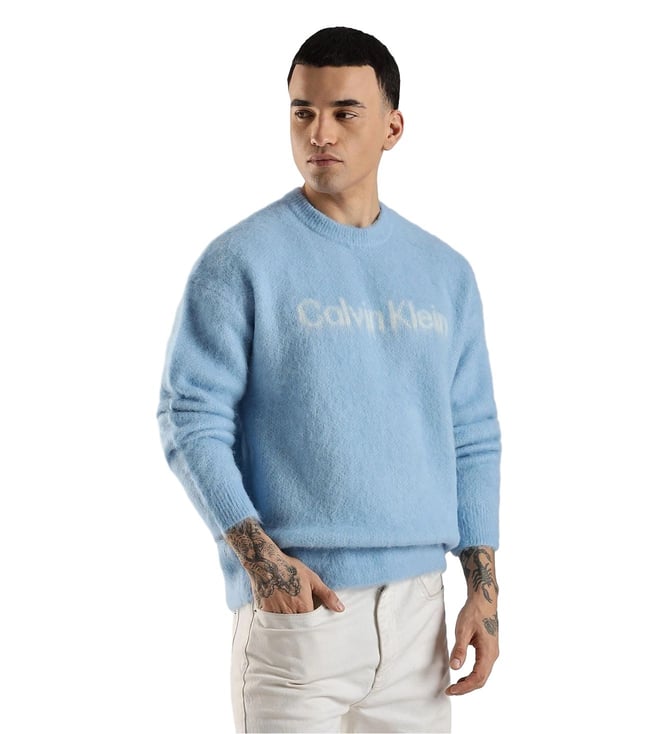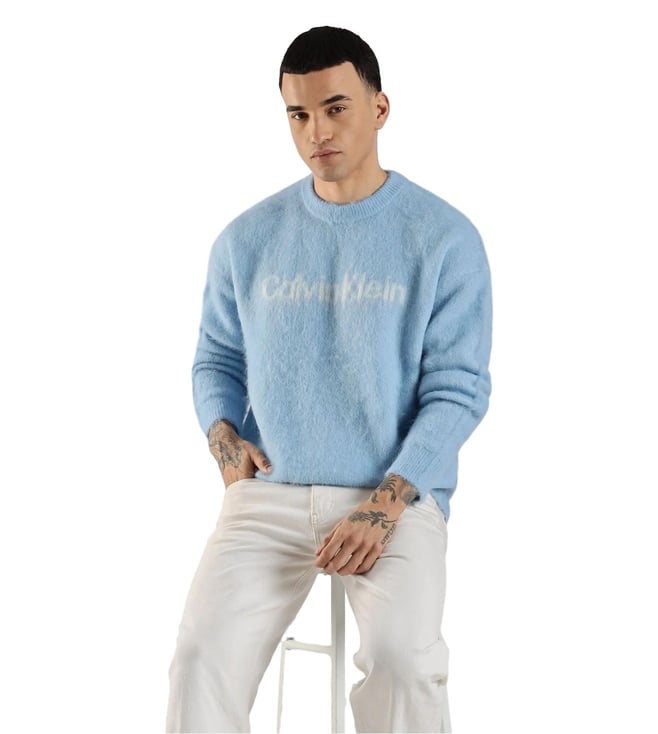 CALVIN KLEIN JEANS Blue Comfort Fit Logo Printed Sweater