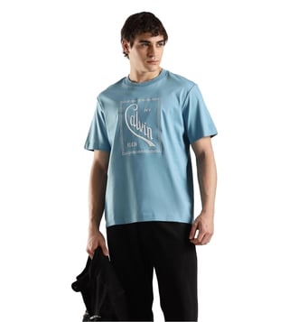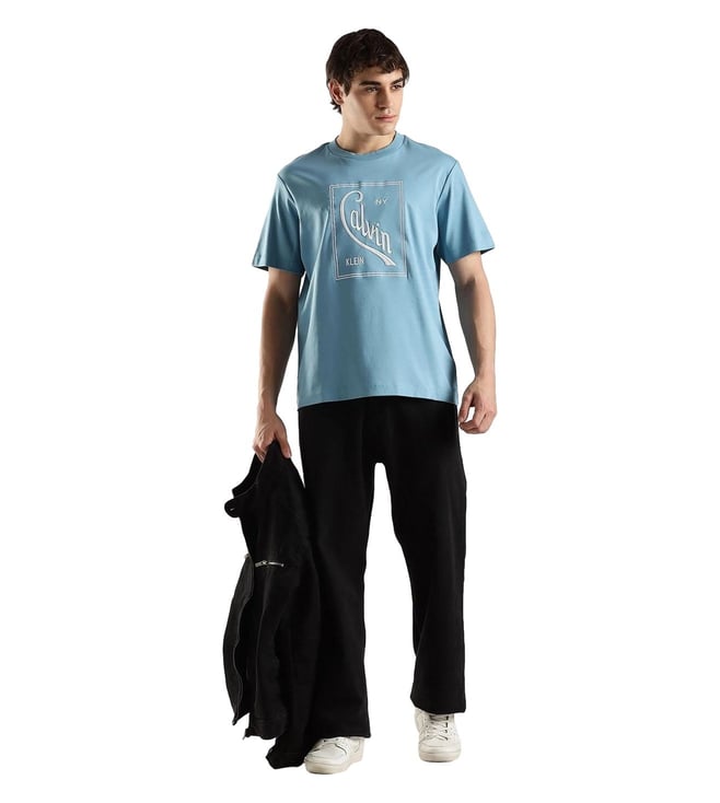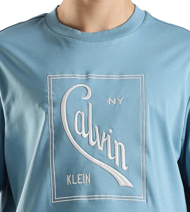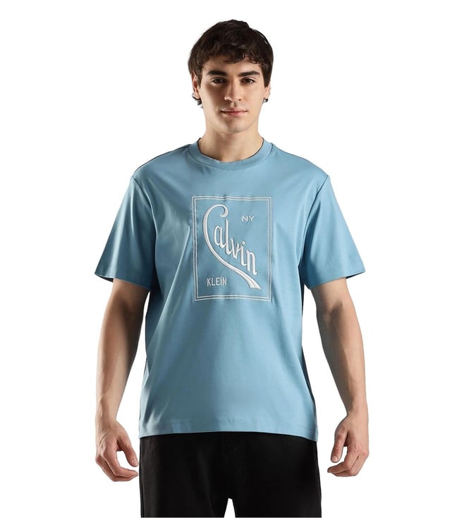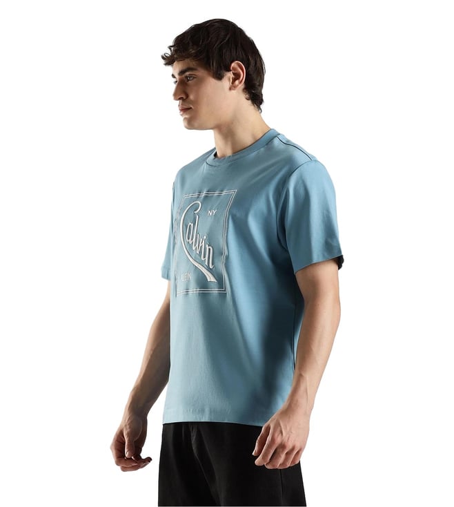 CALVIN KLEIN JEANS Blue Cotton Comfort Fit Logo Printed T-Shirt
