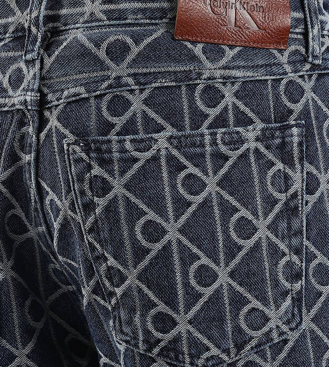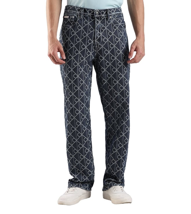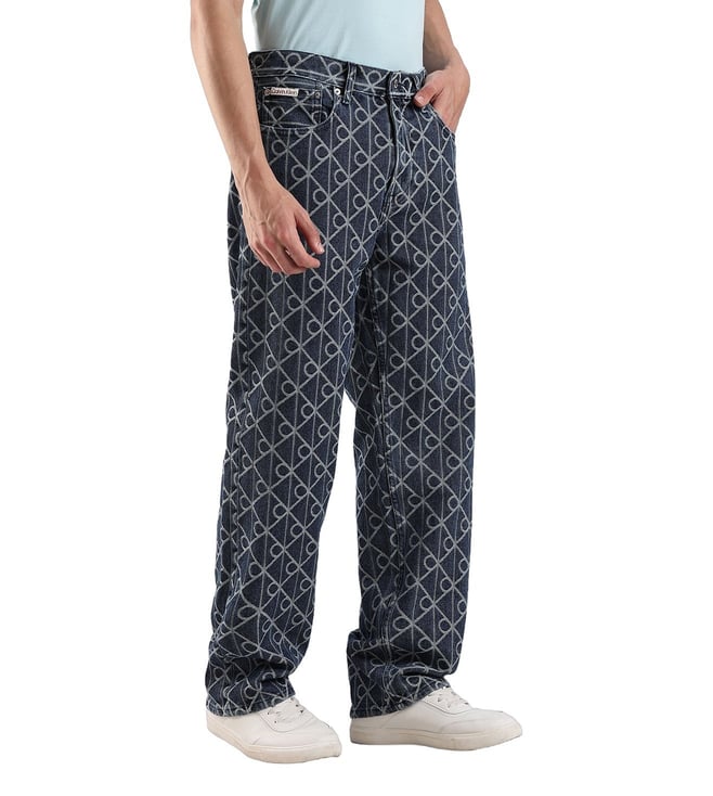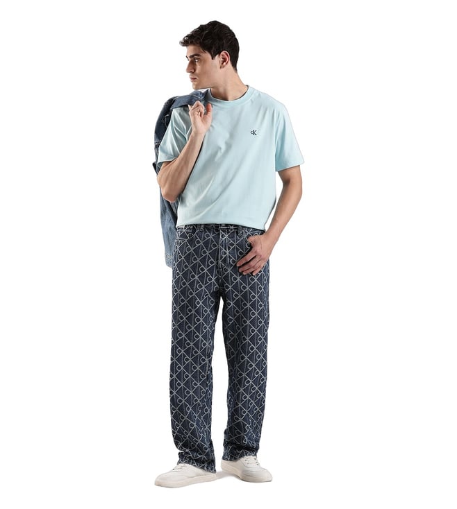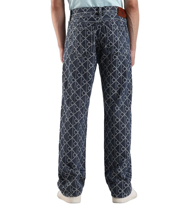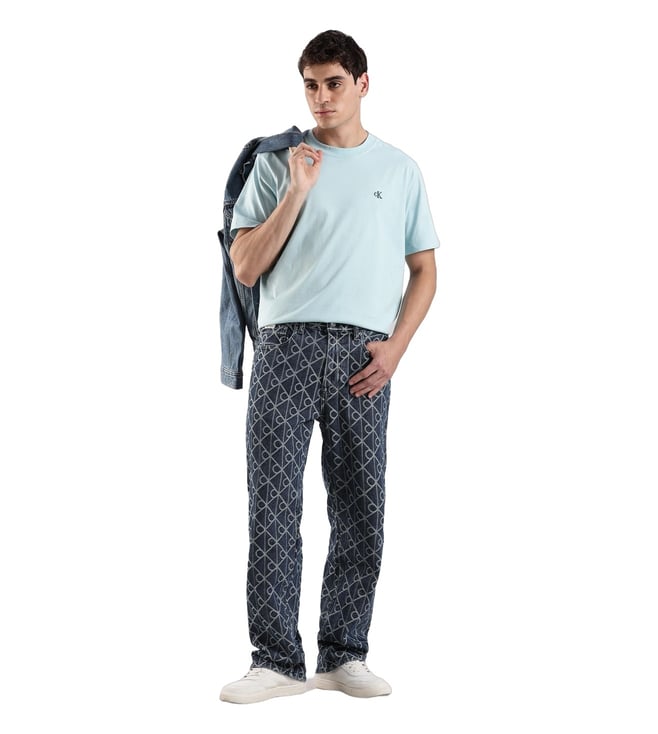 CALVIN KLEIN JEANS Blue Cotton Regular Fit Logo Printed Jeans