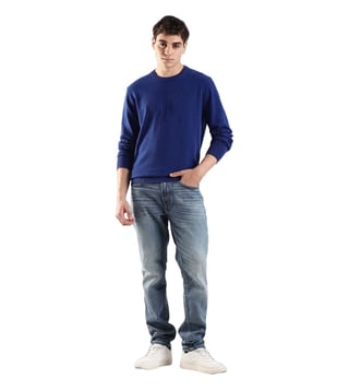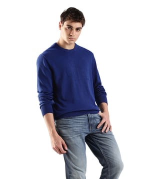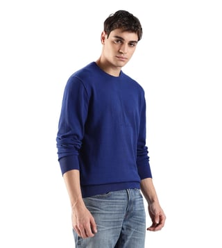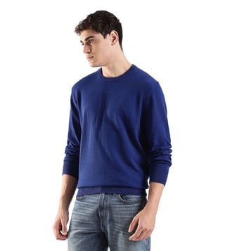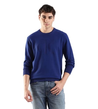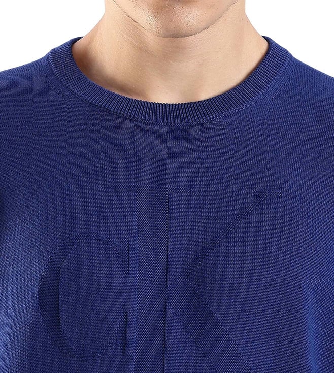 CALVIN KLEIN JEANS Blue Cotton Regular Fit Logo Printed Sweater