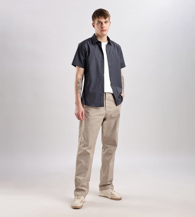 This men's shirt is a masterful blend of classic and contemporary design, featuring a captivating beige fit-in pattern that exudes subtle sophistication. The solid sleeves provide a striking contrast, enhancing the shirt's modern appeal. Crafted from premium cotton fabric, it promises unparalleled comfort and breathability, making it perfect for any occasion. Whether paired with tailored trousers for a polished look or dressed down with jeans for casual elegance, this shirt is a versatile addition to any wardrobe, embodying timeless style with a modern twist.