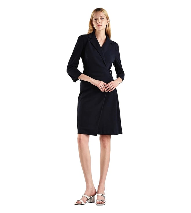 Step into effortless elegance with dress from Calvin Klein Jeans a true masterpiece that's destined to become your go-to choice for both casual outings and formal work settings. This versatile women's western dress blends comfort and style making it a must-have. The solid pattern adds timeless sophistication while the wrap design enhances your silhouette with grace. The woven construction ensures durability and fluidity for daylong wear. Transition easily from meetings to casual gatherings with a piece designed for versatility.