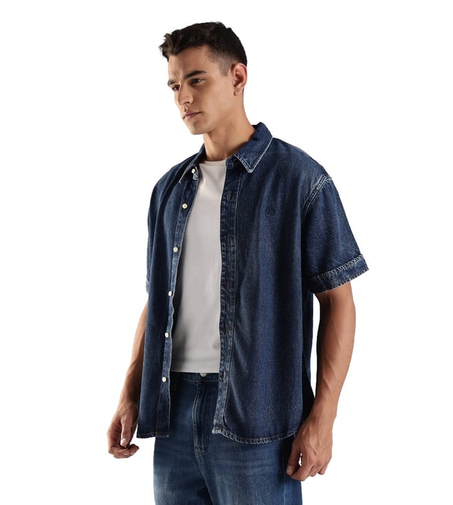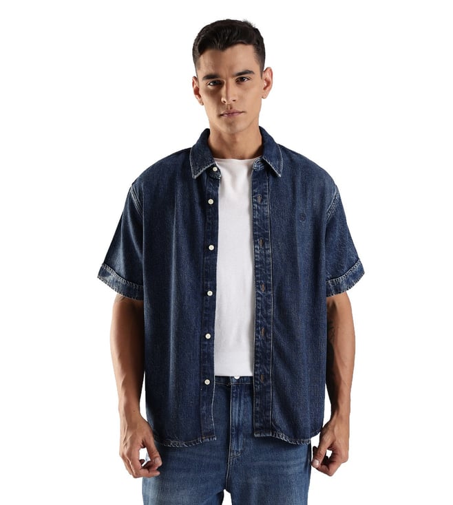 Elevate your casual style with the CALVIN KLEIN JEANS Blue Regular Fit Shirt. Crafted from premium cotton, this shirt offers a comfortable regular fit that effortlessly complements any wardrobe. The classic blue hue adds a touch of sophistication, making it perfect for both casual outings and more polished looks. Whether you're heading to work or out for a weekend brunch, this versatile shirt is a must-have staple for any modern wardrobe. Upgrade your style with CALVIN KLEIN JEANS.