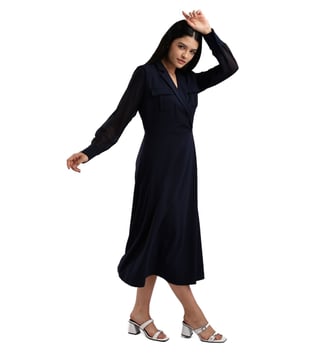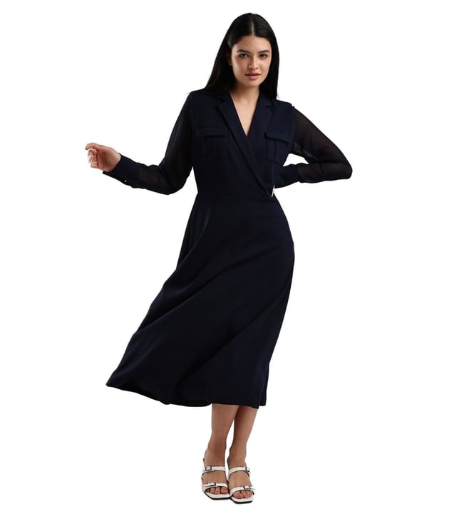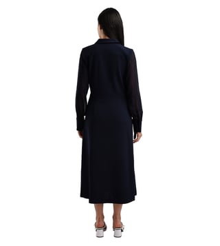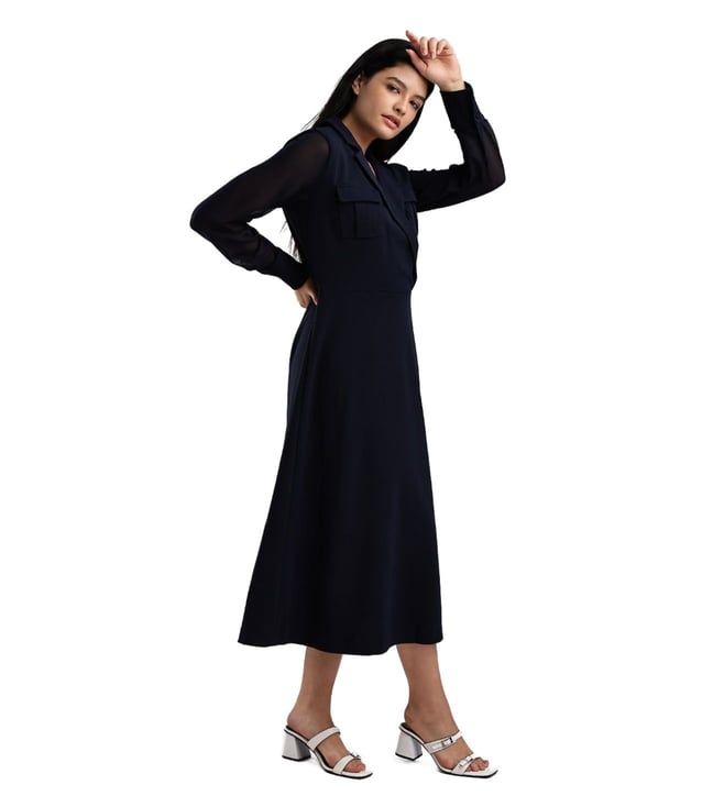Elevate your daily style with the Calvin Klein Jeans Blue Slim Fit Below Knee Dress. Made from high-quality polyester, this dress features long sleeves and a notched lapel for a sophisticated touch. The slim fit design accentuates your curves while providing all-day comfort. Perfect for any occasion, this dress is versatile and easy to style. Stand out from the crowd and feel confident in this chic and timeless piece from Calvin Klein Jeans.