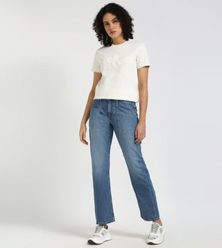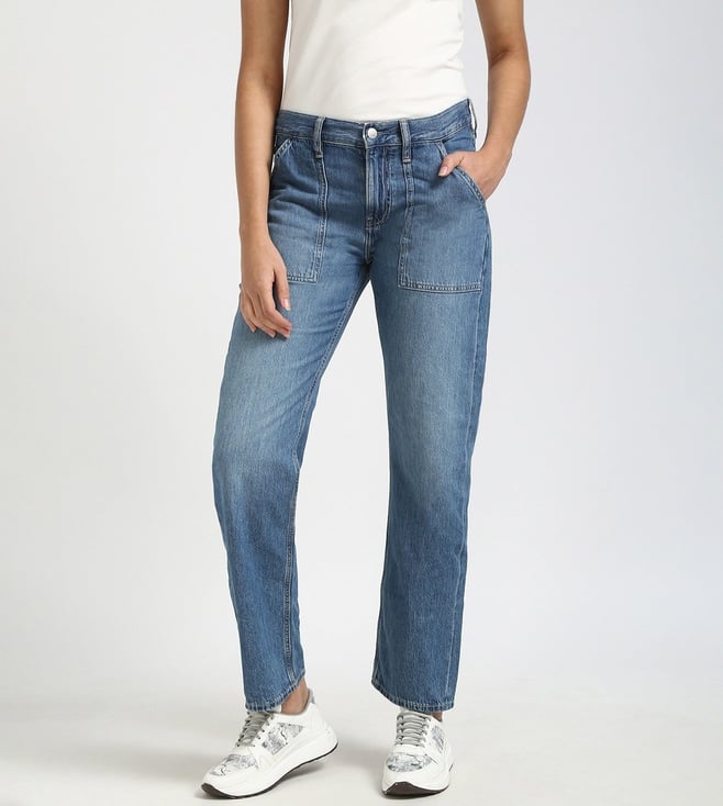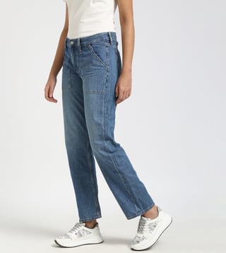Embrace effortless cool in these light blue straight-fit jeans. Crafted from soft, breathable cotton, they offer a classic silhouette that flatters every figure. The light wash adds a touch of vintage charm, while the straight fit ensures a comfortable and flattering look. Pair them with a flowy top and sandals for a casual summer vibe, or dress them up with a blazer and heels for a chic evening look.