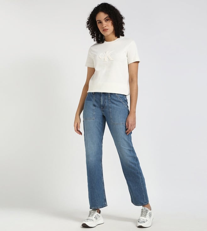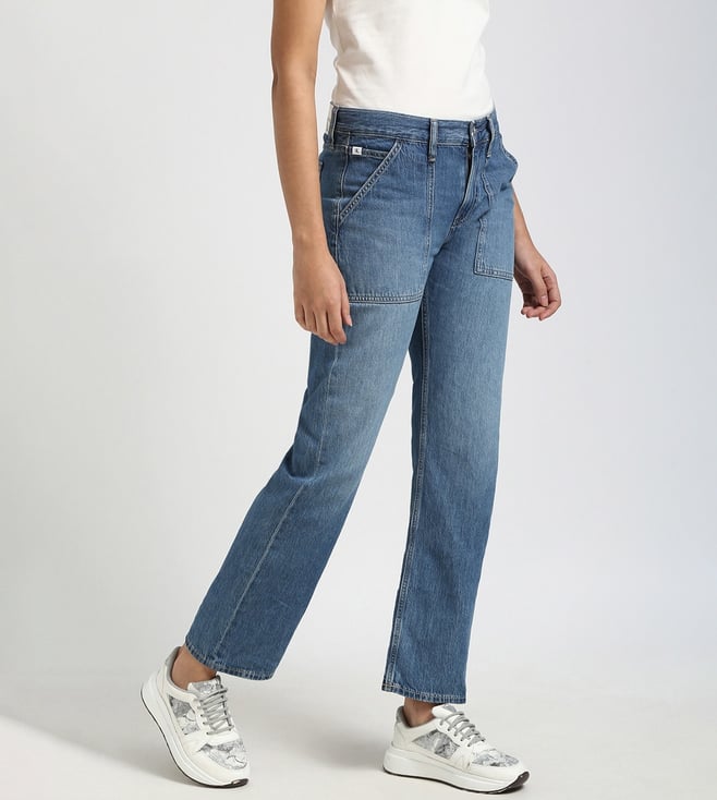 CALVIN KLEIN JEANS Blue Straight Solid Jeans