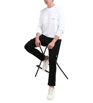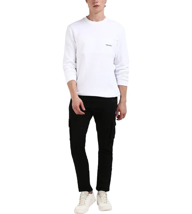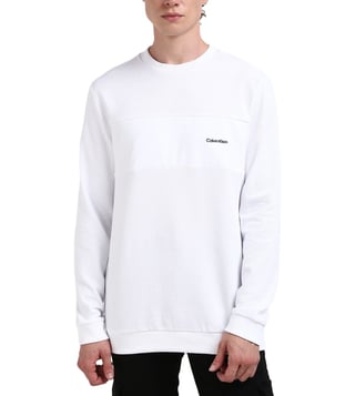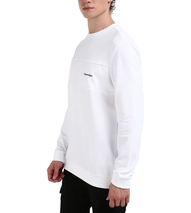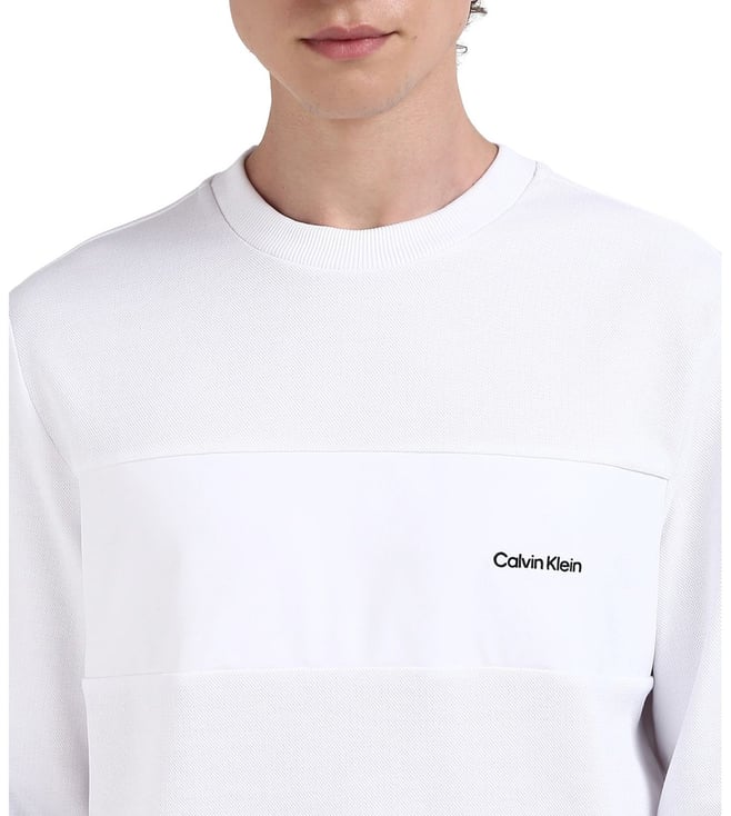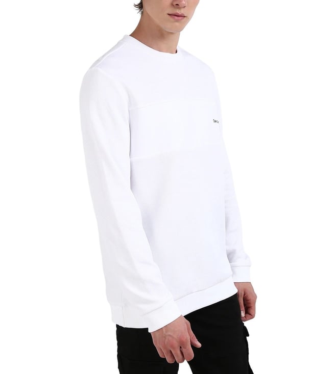 CALVIN KLEIN JEANS Cotton Blend White Solid Men Regular Fit Sweatshirt