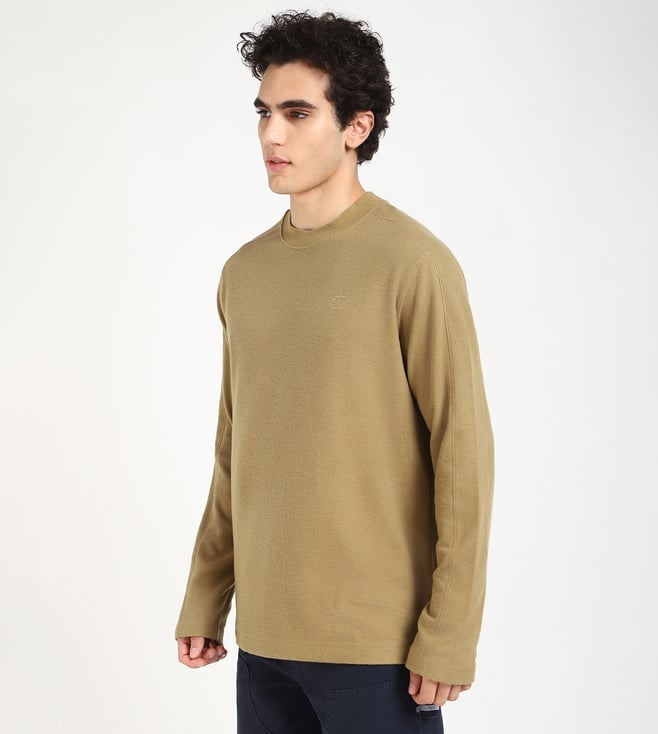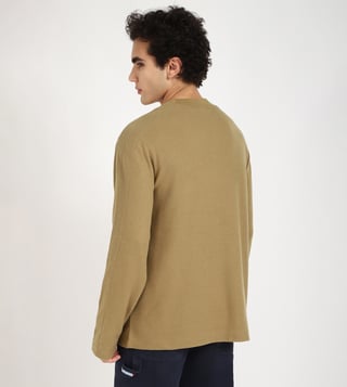 Embrace the timeless allure of gothic olive with this relaxed fit t-shirt. Crafted from a soft cotton polyblend, it drapes effortlessly for a comfortable, lived-in feel. The solid full sleeves add a touch of classic elegance, while the round neck provides a clean, contemporary finish. Perfect for layering or wearing solo, this versatile piece exudes understated sophistication.