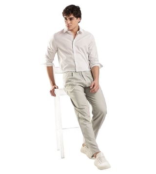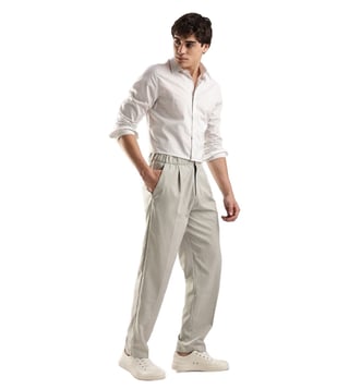 Elevate your everyday look with the Calvin Klein Jeans Grey Chinos Mid Rise Relaxed Fit Trouser. Made with high-quality polyester, these versatile trousers offer both comfort and style for daily wear. The mid rise waist and relaxed fit provide a flattering silhouette while ensuring all-day comfort. Perfect for any occasion, these chinos are a wardrobe essential for those who appreciate quality and fashion-forward design. Upgrade your wardrobe with these timeless trousers that effortlessly blend style and functionality.