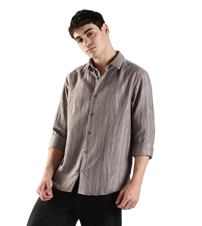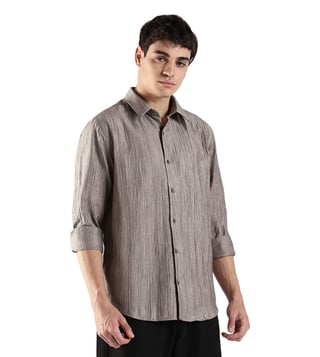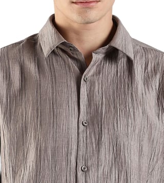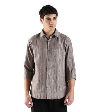 CALVIN KLEIN JEANS Grey Linen Classic Fit Self Pattern Shirt