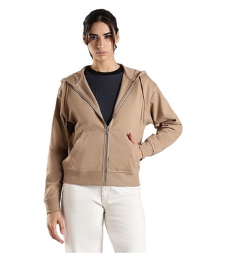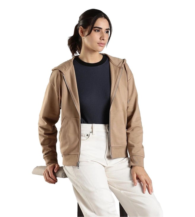 CALVIN KLEIN JEANS Light Brown Cotton Regular Fit Hoodie