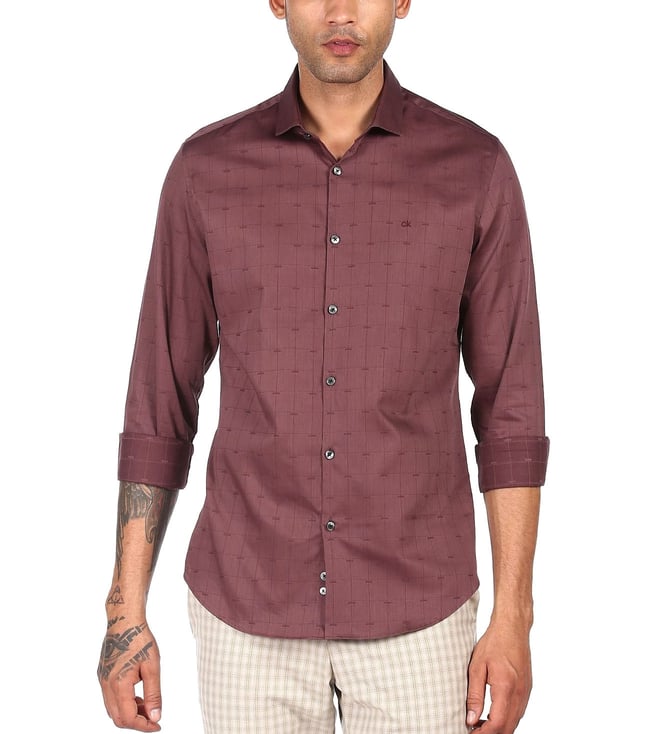 CALVIN KLEIN JEANS Maroon Checks Slim Fit Shirt