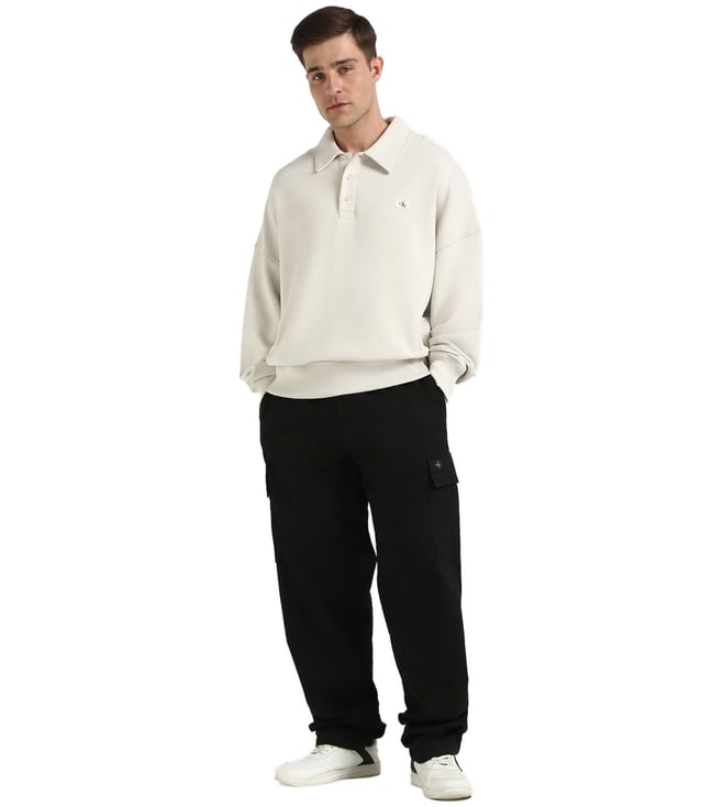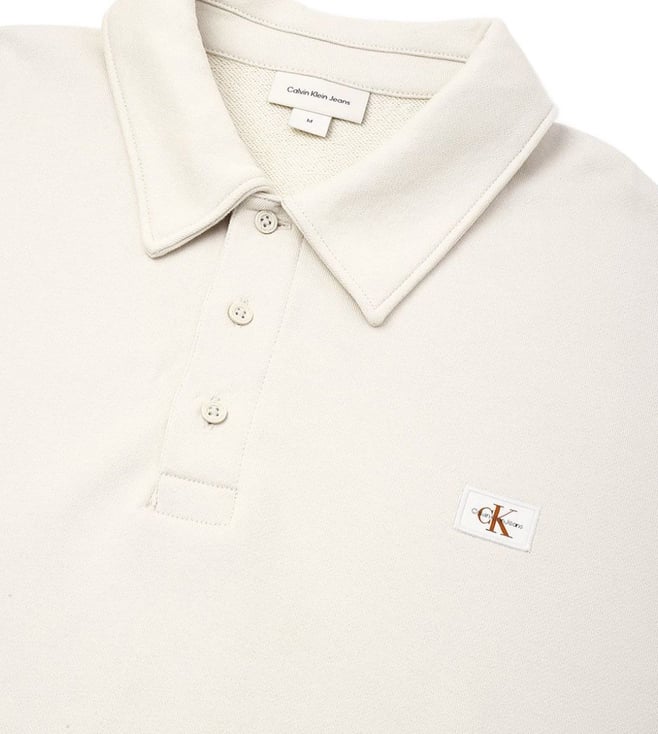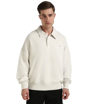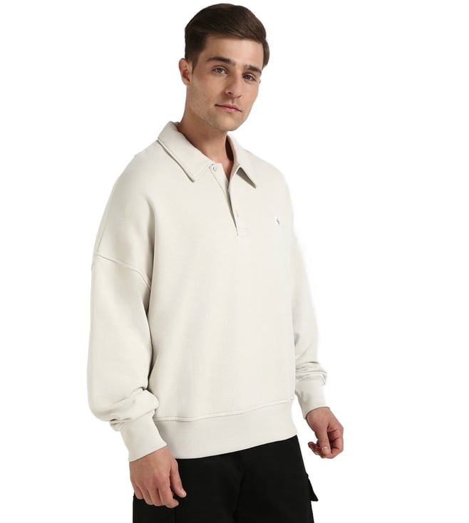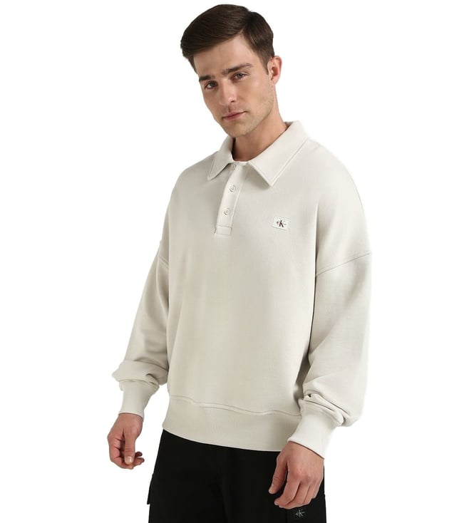 Introducing the Calvin Klein Jeans Moonbeam Comfort Fit Sweatshirt, the perfect blend of style and comfort for your everyday wardrobe. Crafted from soft cotton, this sweatshirt features long sleeves and a shirt collar for a versatile look that can be dressed up or down. Whether you are running errands or lounging at home, this sweatshirt will keep you cozy and stylish all day long. Upgrade your casual wear with this must-have piece from Calvin Klein Jeans.