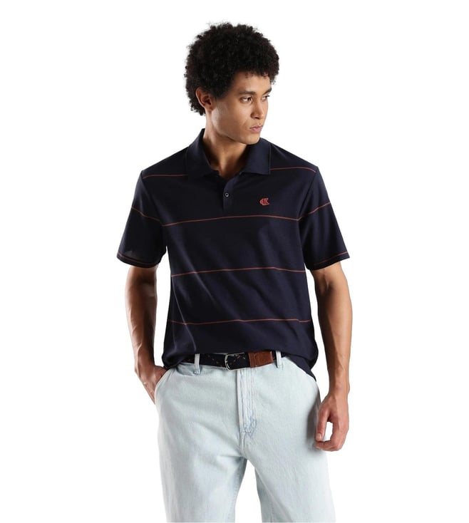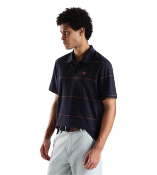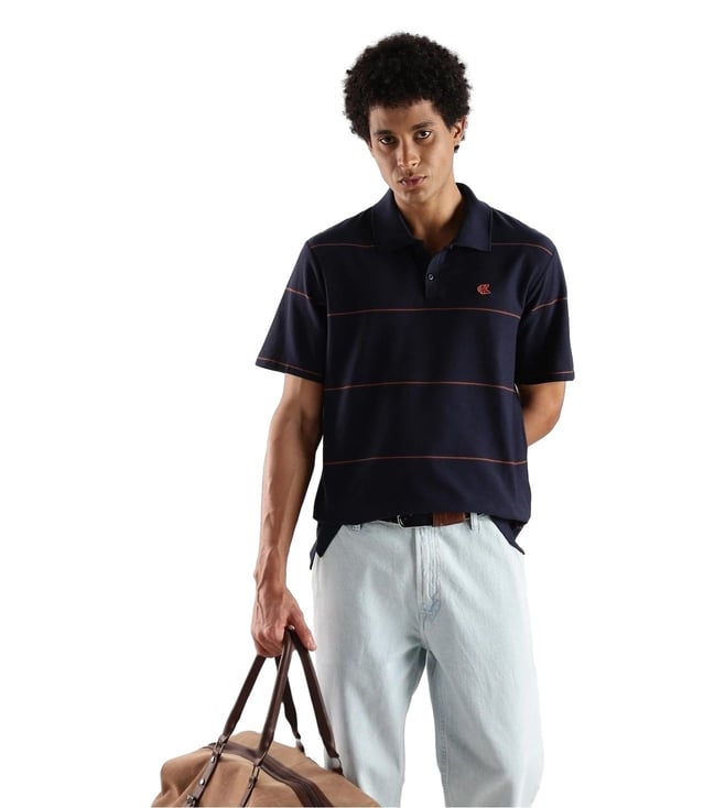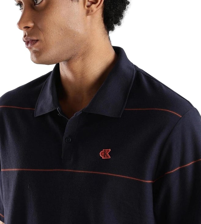 CALVIN KLEIN JEANS Navy Cotton Comfort Fit Striped Polo T-Shirt
