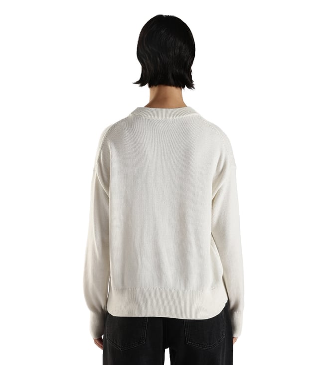 CALVIN KLEIN JEANS Off White Woven Design Regular Fit Sweater