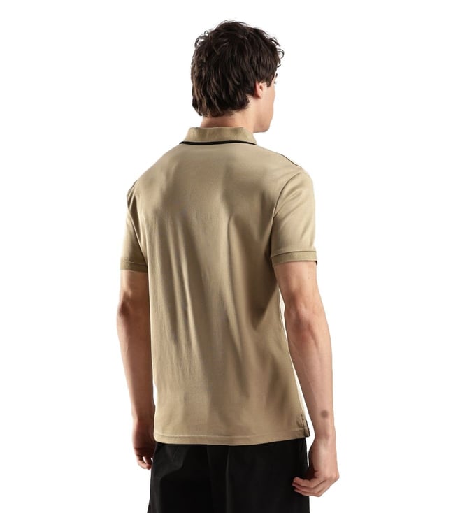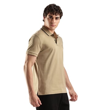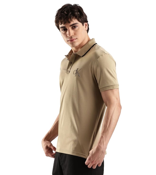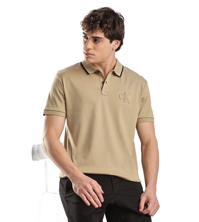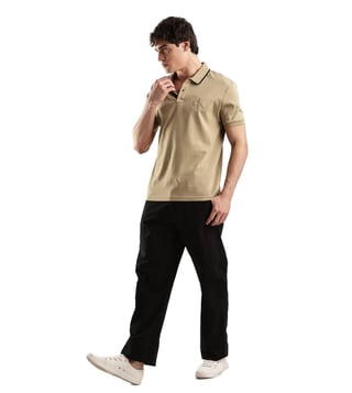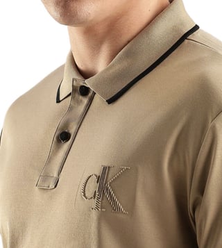 Elevate your everyday style with the Calvin Klein Jeans Olive Regular Fit T-Shirt. Crafted from soft cotton, this versatile piece is perfect for daily wear. The short sleeves and classic polo collar add a touch of sophistication to your casual look. Whether you are running errands or meeting friends for brunch, this t-shirt will keep you comfortable and stylish all day long. Upgrade your wardrobe with this essential piece from Calvin Klein.